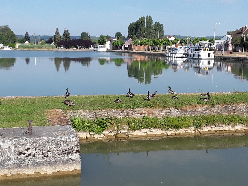 Nous avons quitté l’agréable camping de Pouilly en Auxois pour prendre le canal de Bourgogne. Echange ce matin avec des cyclos devenus marcheurs et qui, finalement, nous ont rejoints pour manger dans un petit resto. Ils ont laissé le vélo pour la marche avec des journées de 30km ,