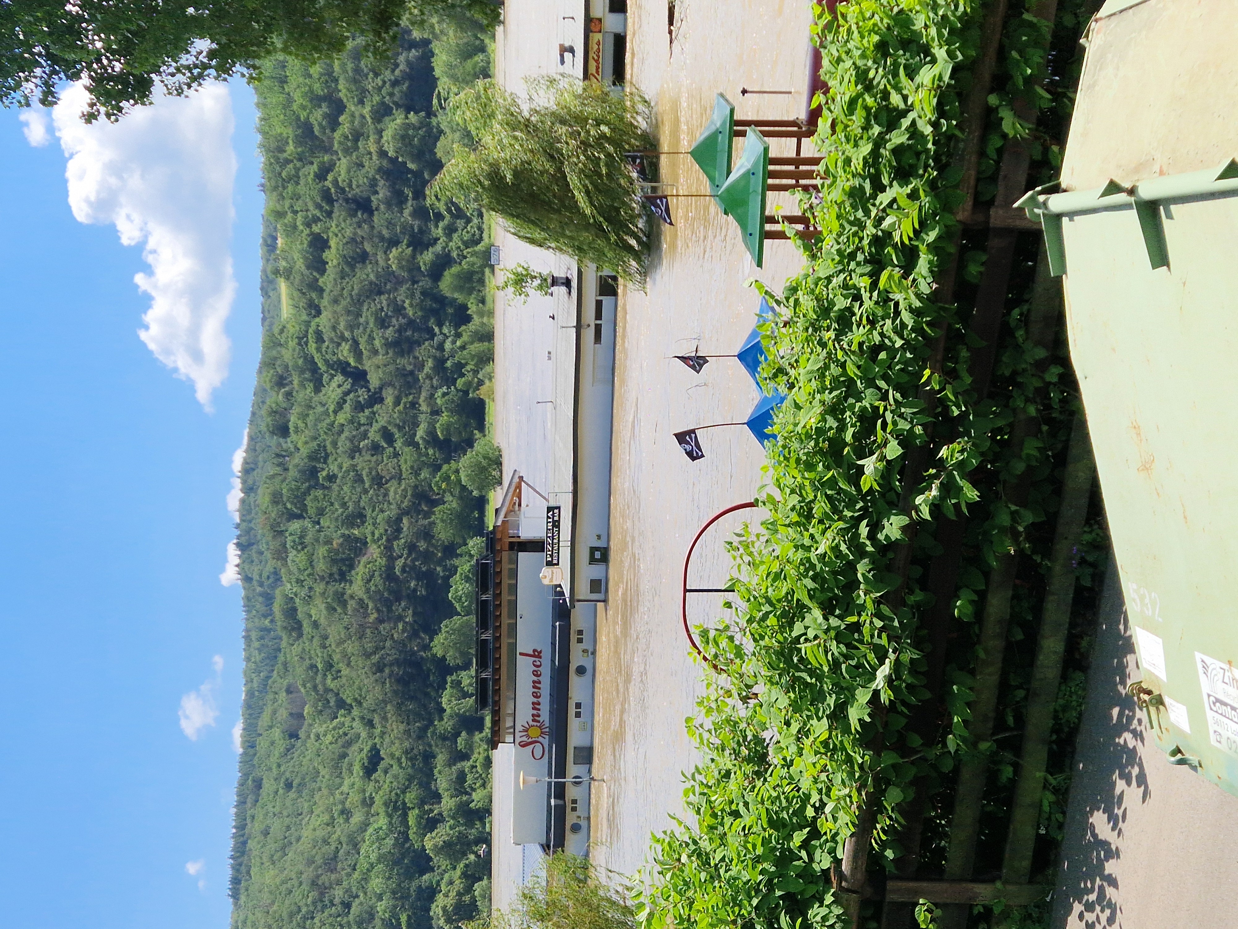 Après 40 km nous avons repris le vélo. Ce soir, nous sommes au bord du Rhin, 45 km après Coblence.