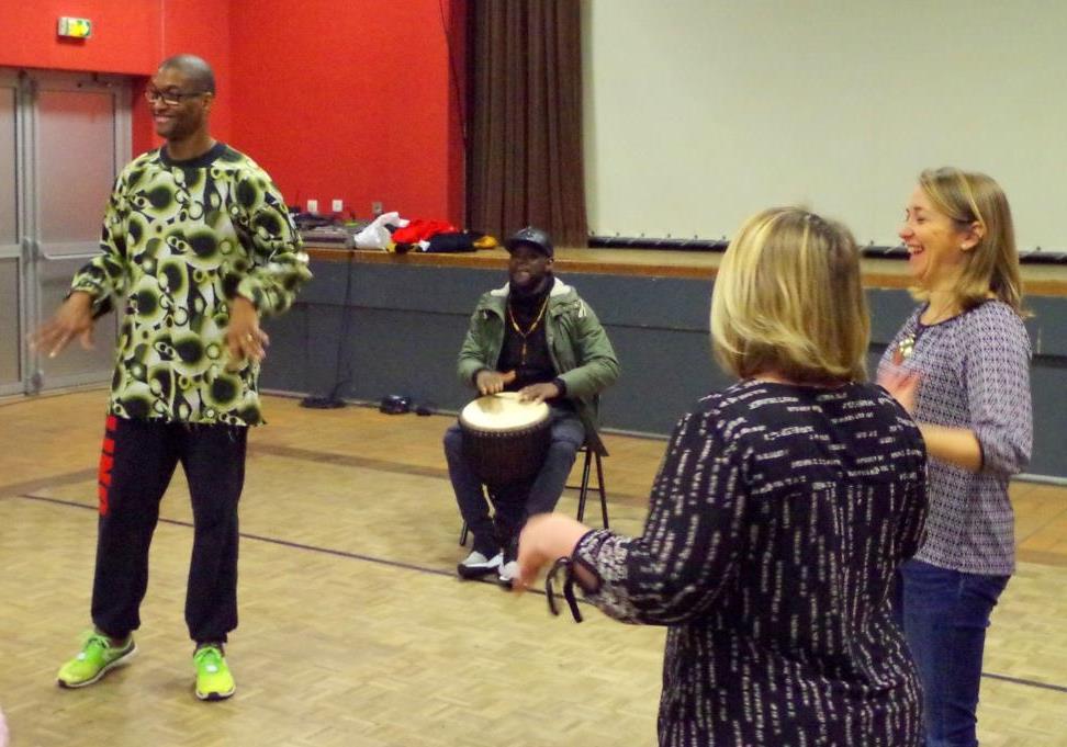 Lino, professeur de danse à l’OMAC et Adama au djembé ont animé l’atelier danse avec enthousiasme.