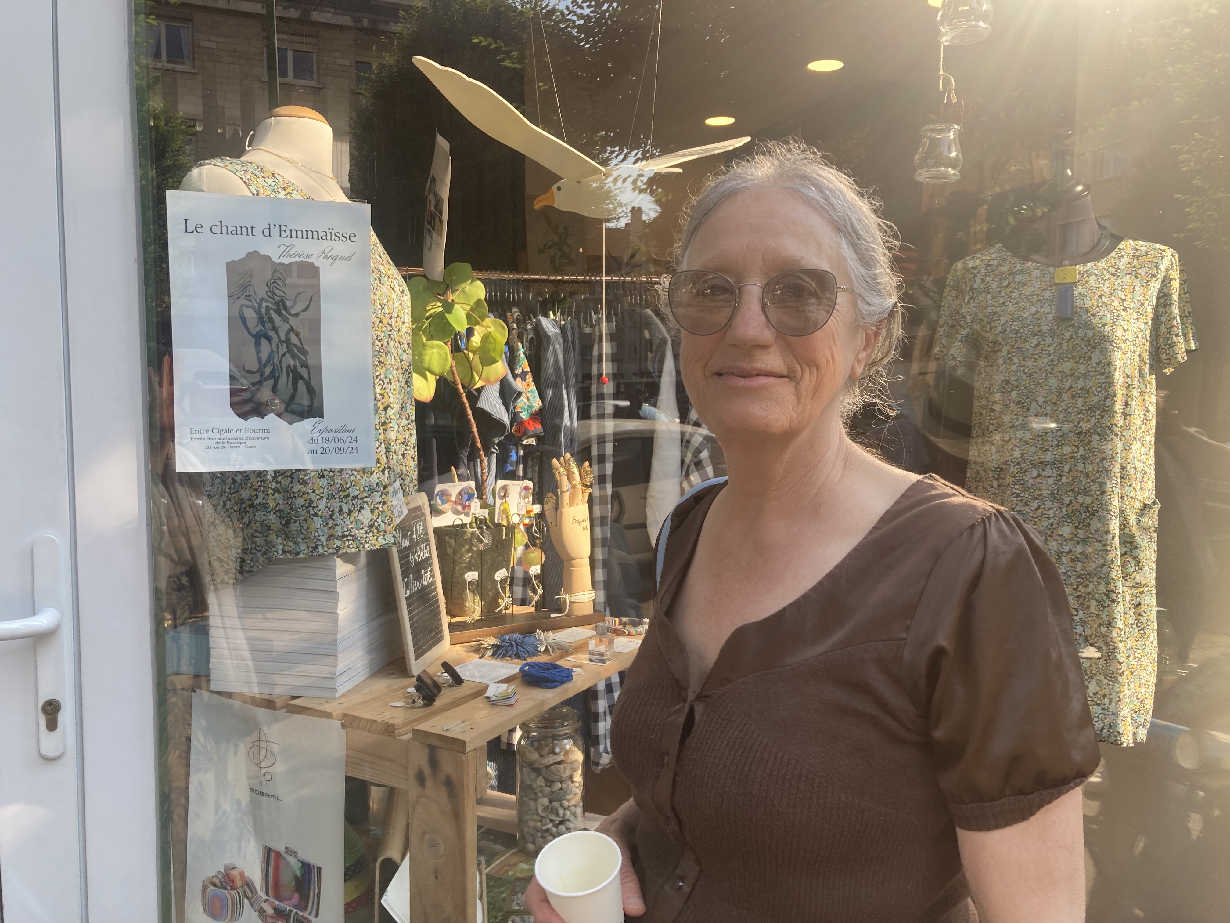 Thérèse Porquet, Blainvillaise, expose actuellement à la boutique « Entre Cigale et Fourmi », rue du Havre, à Caen du 18 juin au 20 septembre 2024. Horaires d’ouverture de la boutique.