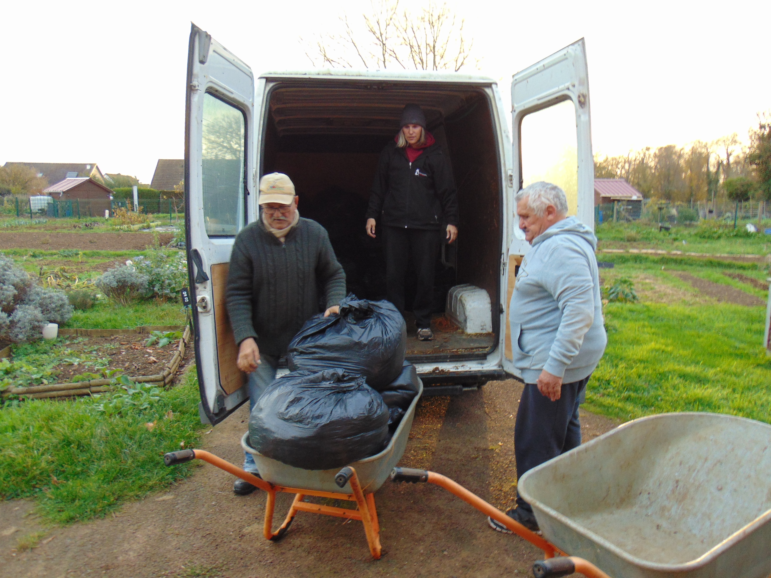 Dimanche matin,les jardiniers se sont faits livrer du fumier(106 sacs),afin d’enrichir leur terre.Il leur reste plus qu’à préparerle potager pour l’hiver et les futures plantations de légumes.