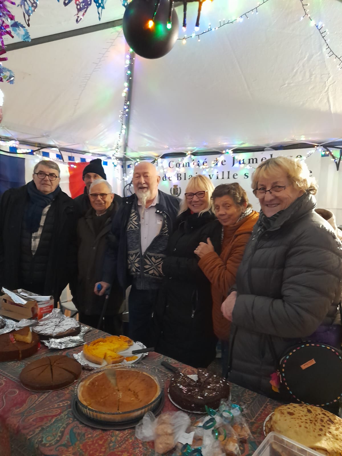 Marché de NOËL 10/12/2022Publié le 10 janvier 2023 par Comité de jumelageStand du marché de Noël joyeux malgré un vent glacial