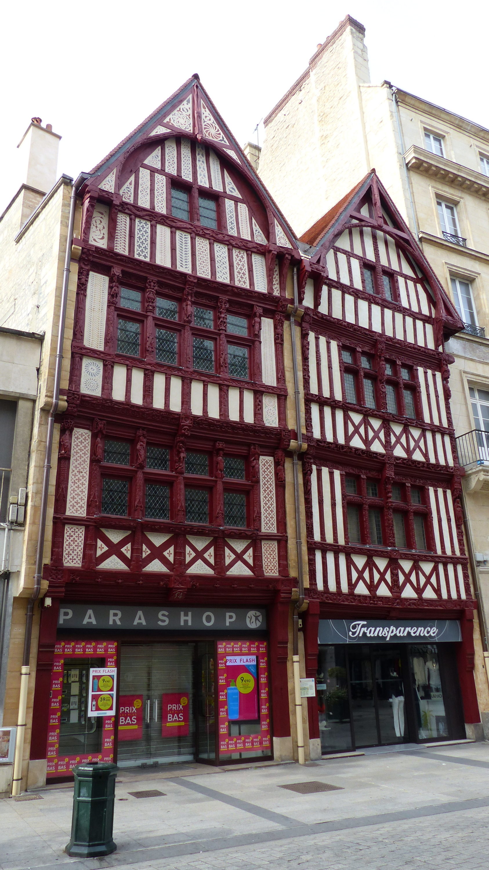 Caen a su garder quelques maisons à pans de bois avec leurs sculptures et moulures qui habillent leurs façades, notamment dans la rue Saint Pierre aux numéros 52 et 54.