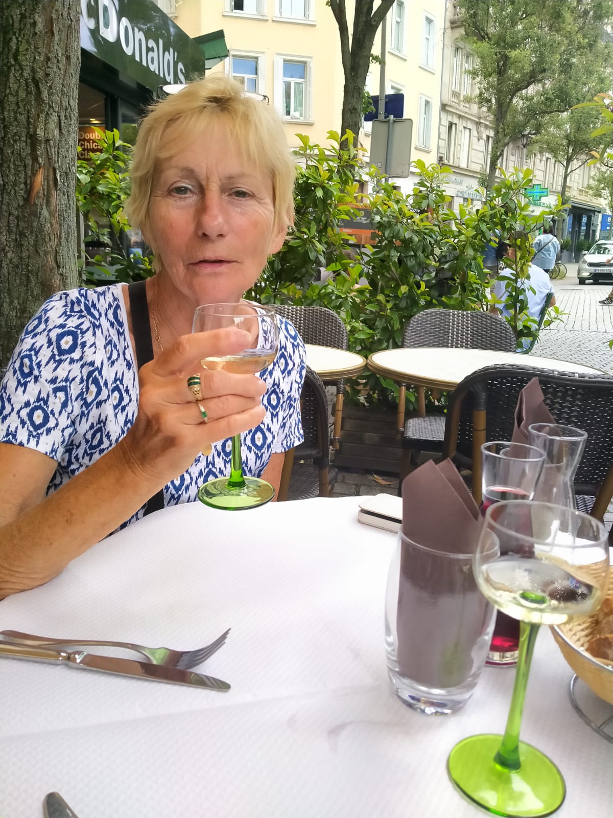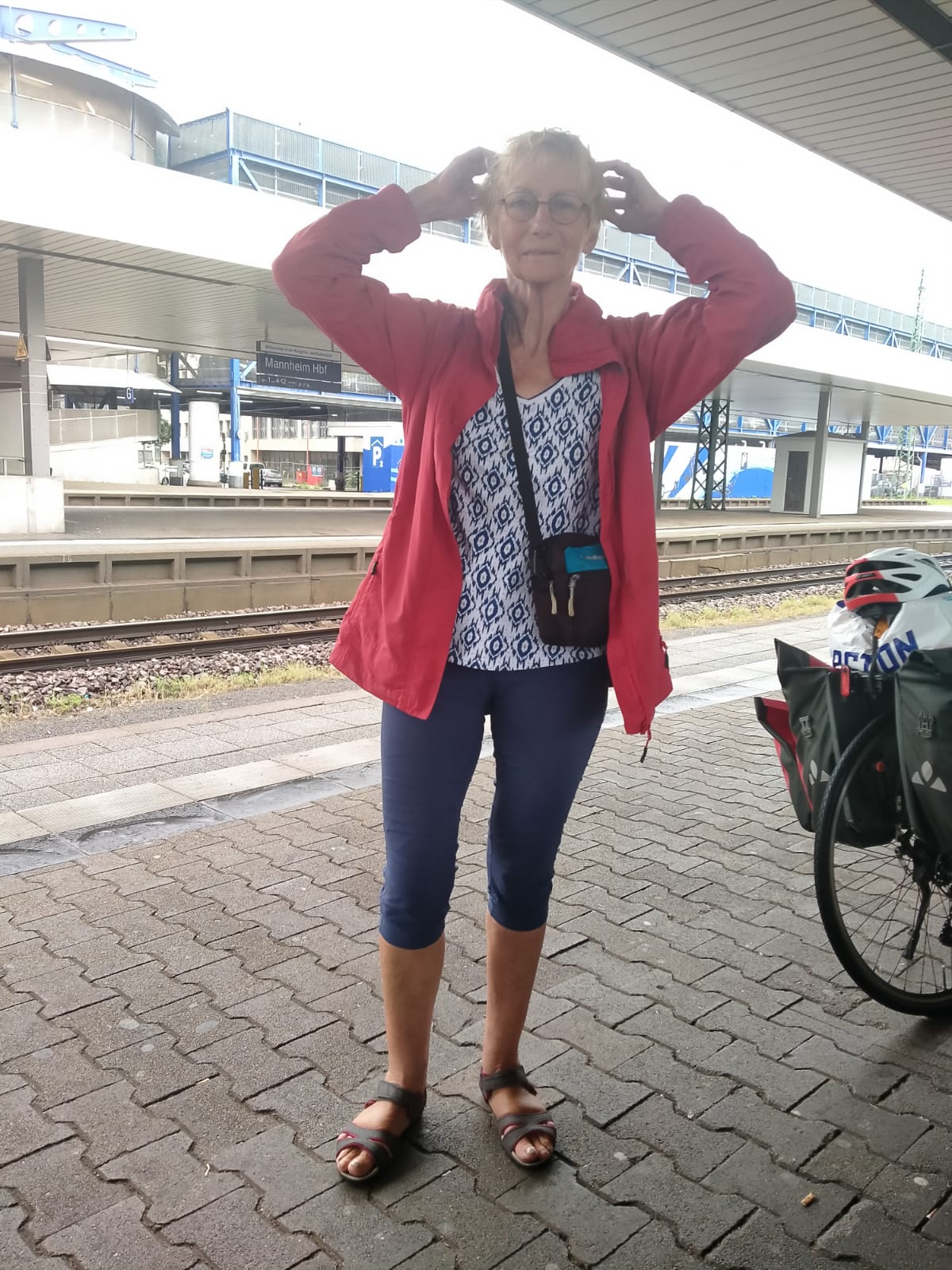 Bien sûr, nous avons très peu dormi. Nous étions avec une bande de SDF: nous l’étions aussi! Nous sommes partis a 5h. Il y avait 2 changements. Il y en avait 1 où nous nous n’avions que 5 minutes donc nous l’avons raté et nous nous sommes pris une grosse pluie d’orage en sortant du train. Trempés nous avons dû nous changer et nous avons pris le train suivant, ce qui nous a décalé l’arrivée à Strasbourg, nous sommes filés à la gare une belle gare à Strasbourg. Mais ouf! il restait que 2 places sinon pas de train avant mardi. Nous aurions trouvé une solution, on ne fait que ça depuis presque 4 semaines!!!